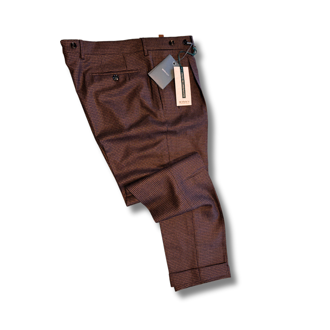 Questo Barber è un pantalone in lana a doppia Pence con un risvolto a 3,5 cm