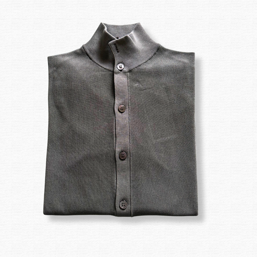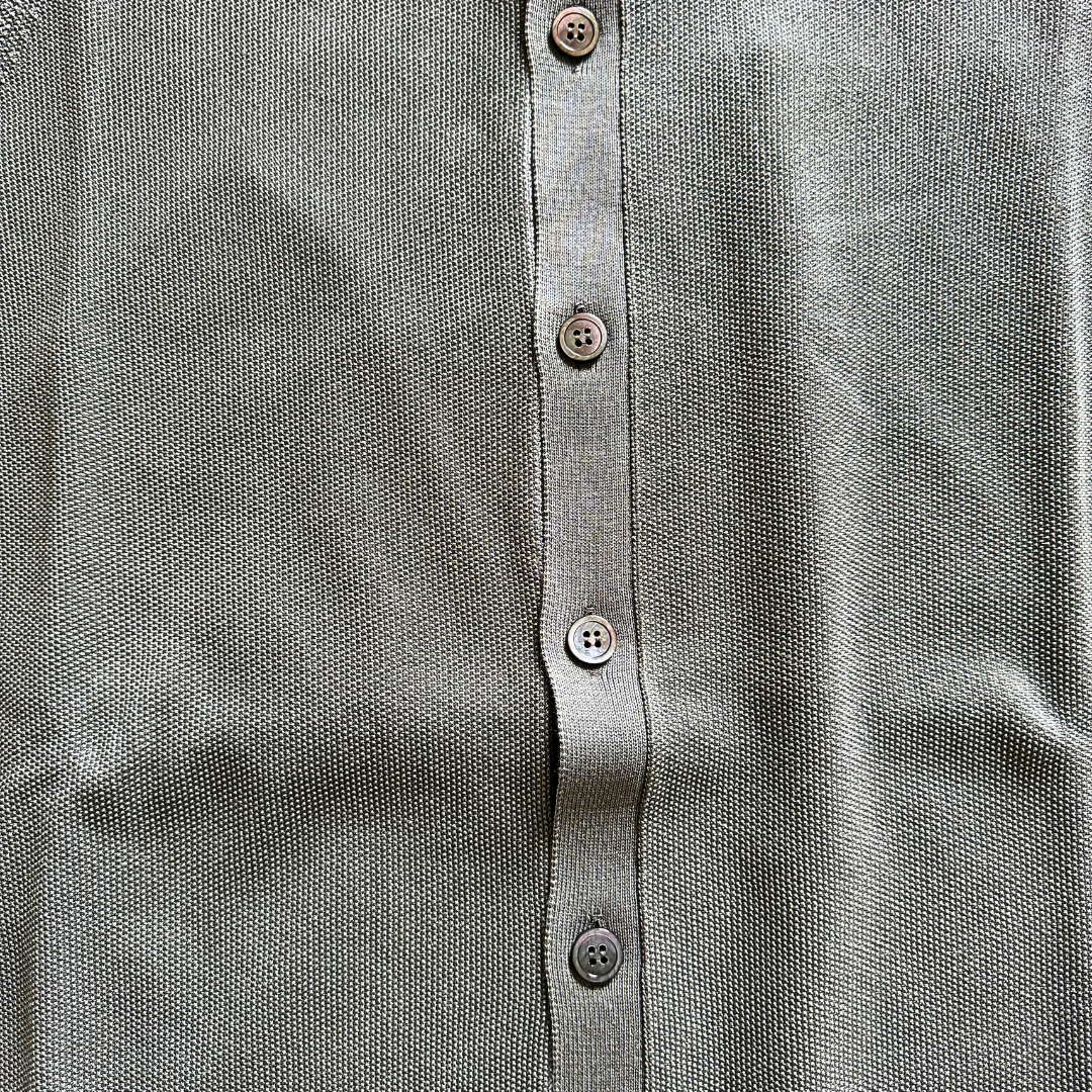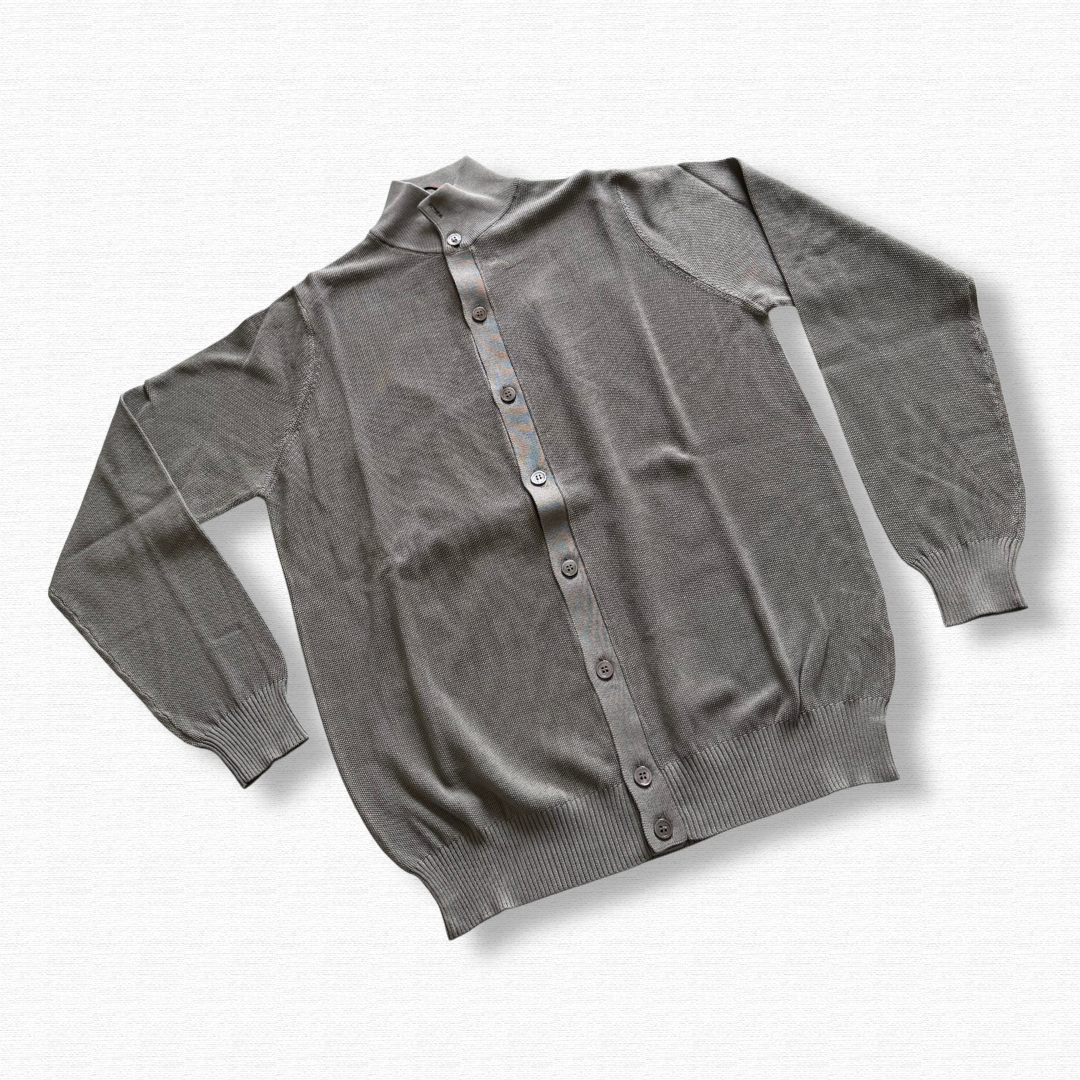 Questo cardigan è un vero jolly del guardaroba: indossalo sopra una t-shirt bianca per un look casual-raffinato, oppure abbinalo a una camicia e un pantalone chino per un outfit da ufficio impeccabile ma rilassato. La tonalità grigio verde lo rende un classico intramontabile...