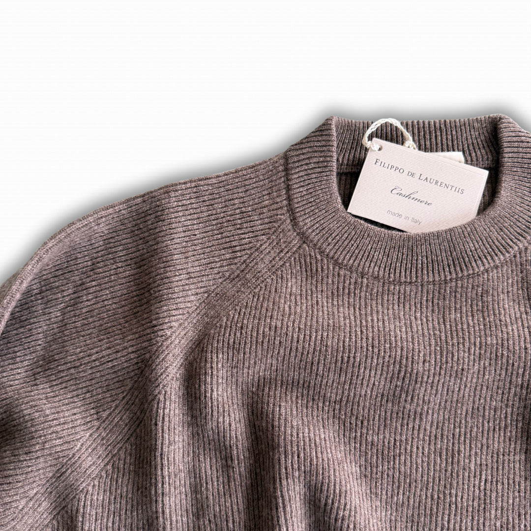 Il girocollo raglan in costa inglese, realizzato in una lussuosa miscela di lana e cashmere, è un capo che unisce stile e comfort.