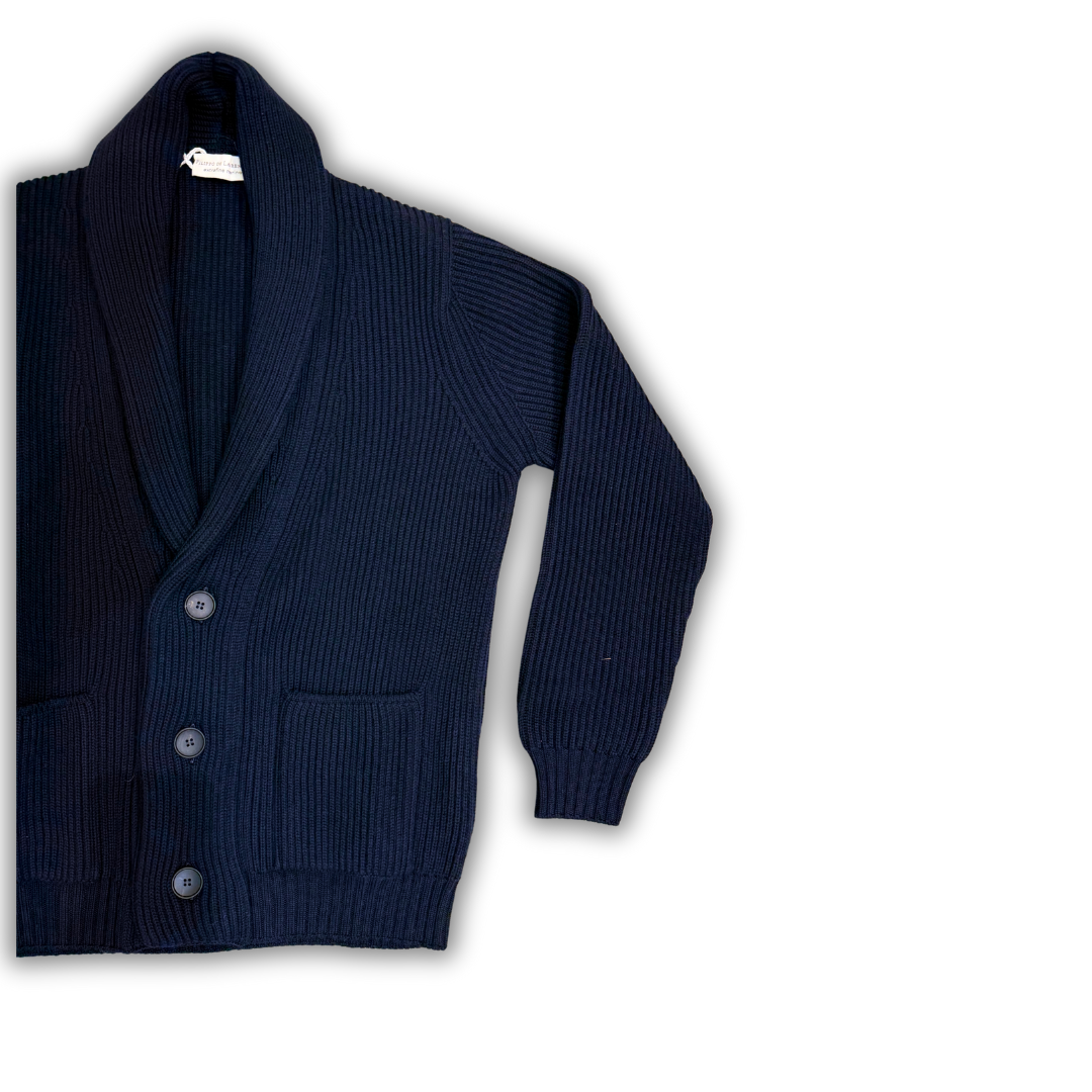 Il cardigan sciallato con tasche è realizzato in lana, dotato di un collo sciallato che aggiunge un tocco di eleganza.