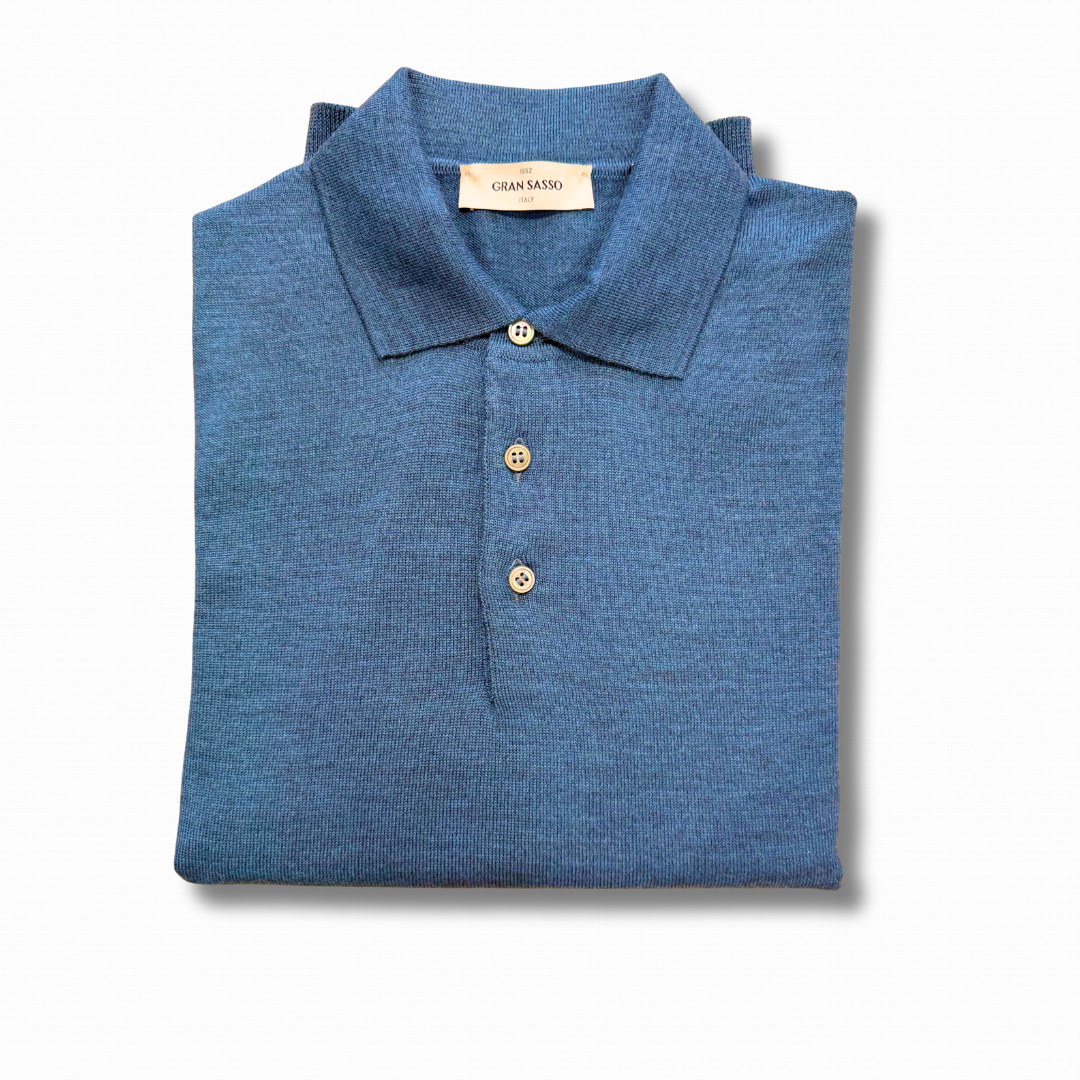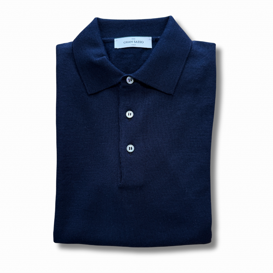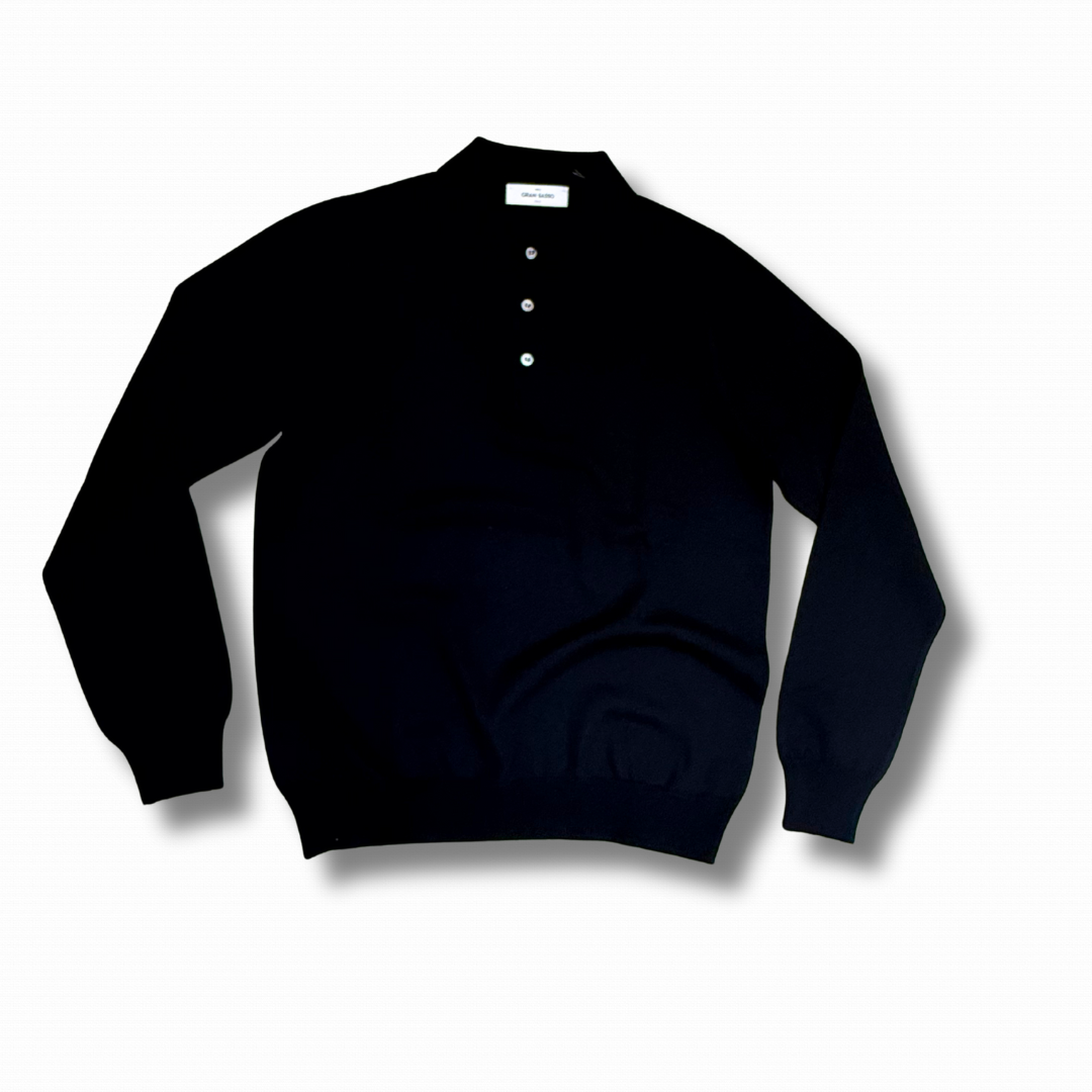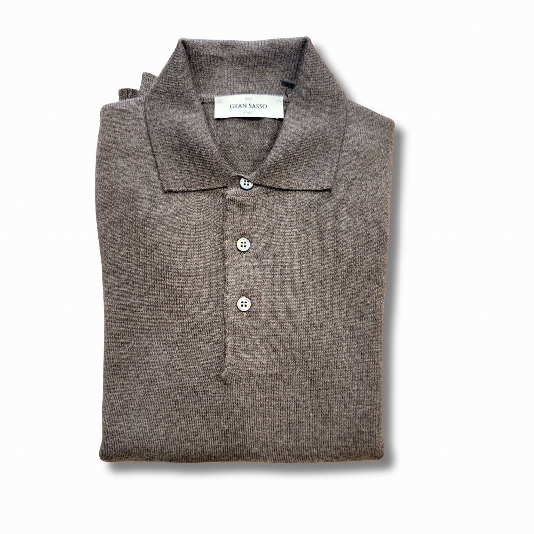 Polo a manica lunga realizzata, il Italia, con lana merino Extra Fine, morbida e piacevole, ideale sia per la stagione intermedia che per i mesi più freddi.