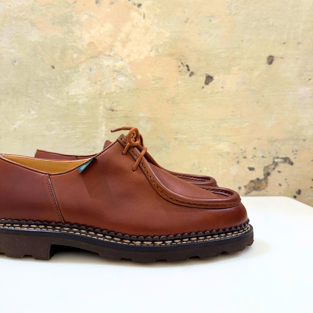 Iconico Derby Michael / Marche II Paraboot in pregiata pelle conciata al vegetale con costruzione norvegese.